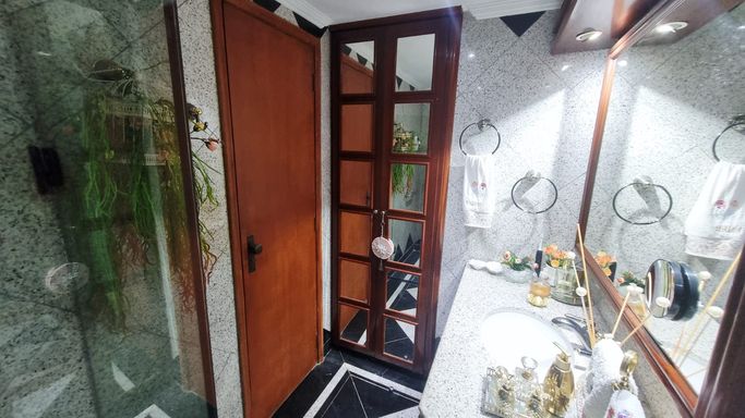 - Piso na sala de mármore, granito na cozinha e flutuante nos quartos