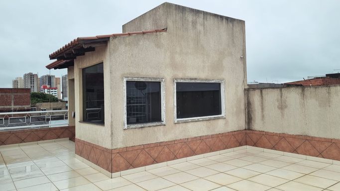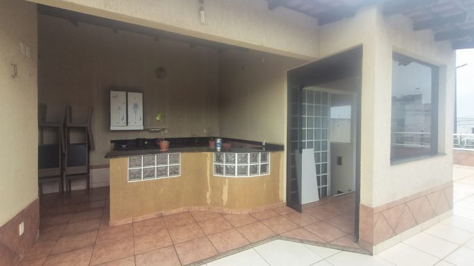 - No terraço: área gourmet com banheiro, cozinha, uma área coberta e outra descoberta com vista para ambos os lados da casa.