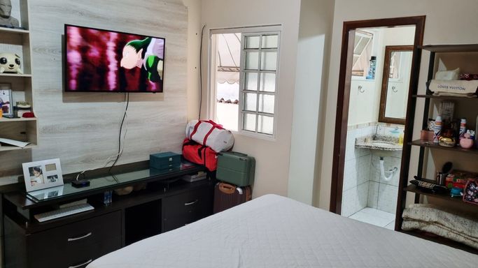 - 1º andar: 4 quartos, sendo duas suítes, uma varanda e banheiro social